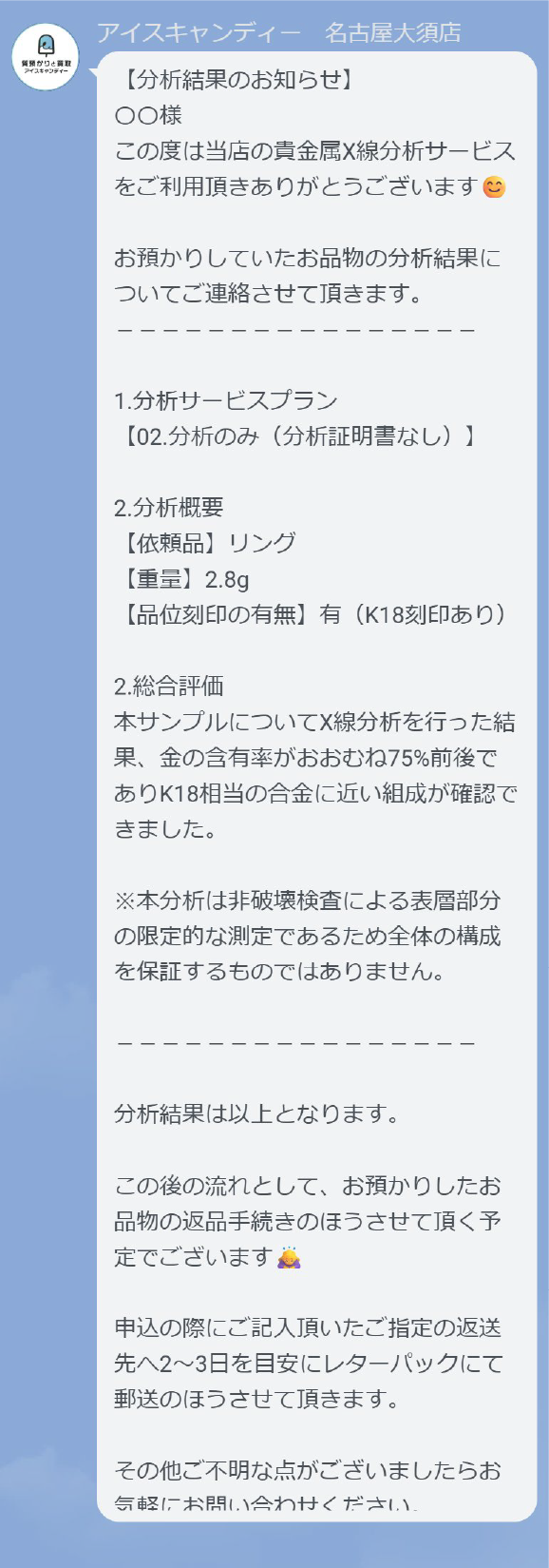 到着から約3日でスピーディに解析し、まずはLINEで結果をご連絡します